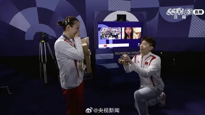 2024年8月2日,巴黎奥运会羽毛球混合双打金牌赛,中国组合郑思维/黄雅琼2-0战胜韩国组合获得金牌。颁奖仪式后,刘雨辰向黄雅琼惊喜求婚,黄雅琼喜获一金一钻!